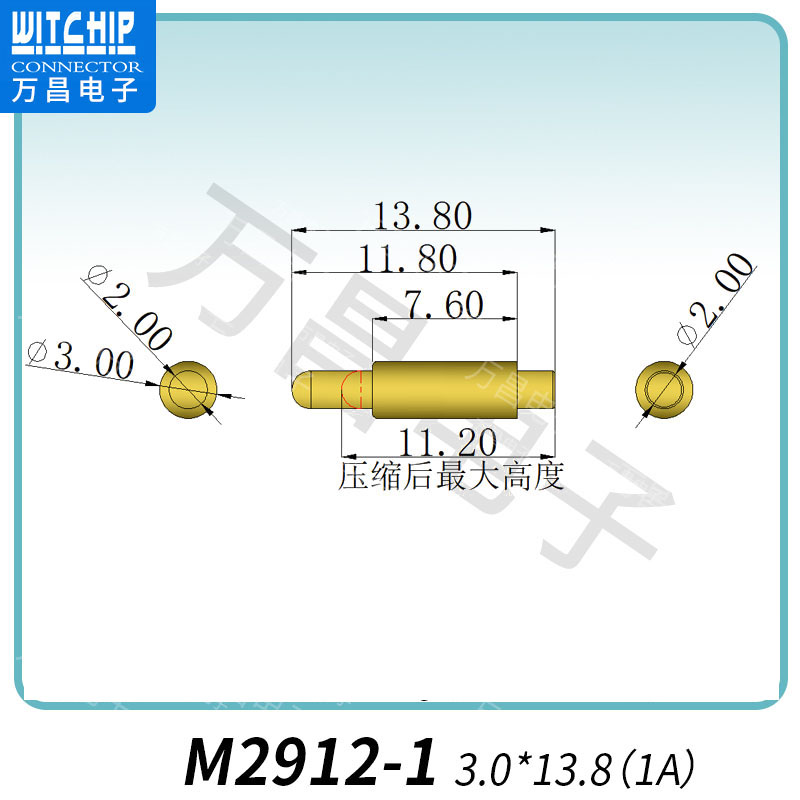 2016-06-22M3201 2.0x9.6(1A)探针 充电弹簧针 磁吸式弹簧针
